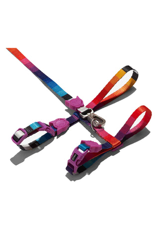 Take your cat exploring with Zee.Cat's Prisma Cat Harness with Leash! This light and durable harness is made with soft polyester to keep your kitty comfortable and secure. For extra protection, this harness contains a sturdy buckle with a four point locking system. This vibrant prismatic harness is designed to enhance the walking experience for both you and your cat!