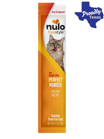 Nulo FreeStyle Chicken Perfect Puree is a tasty way to show your tiny tiger how special they are! Serve directly from the packet as a lickable treat or use as a topper to kibble or canned food!