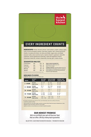 The Honest Kitchen's dehydrated meals must be rehydrated before feeding to your dog. You may use less or more water than suggested, depending on your dog's preference. Split meals into AM and PM.