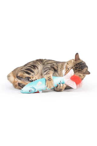 Treat your cat to something cheerful this holiday season with the Huxley and Kent Merry Fishmas Sardine Mint Cat Toy! This sardine brings the fun with every crinkle and textured bite. With catnip inside, this cheerful toy can handle even the most enthusiastic partiers. Decked with a Santa hat and a red feather, this festive toy is sure to keep your kitty delighted all winter long.