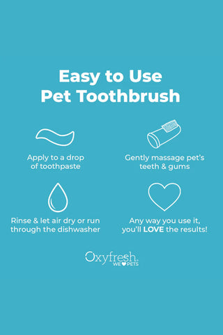 Keep your pet's breath fresh and their teeth clean with OxyFresh's Pet Finger Brush Pack! These reusable, phthalate-free finger brushes will allow you to easily reach the places a toothbrush won't, all while being gentle with your pet's gums!