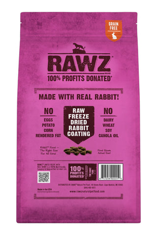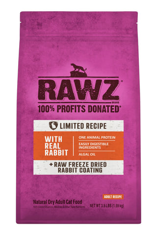 Rawz Real Rabbit dry formula is a purr-fect choice for your feline friends with sensitive stomachs. As a limited ingredient diet, Rawz Real Rabbit is really only rabbit! Each freeze-dried coated kibble is made of easily digestible protein with low fat content. Delicious and satiating, your kitty will pounce with excitement at every meal!