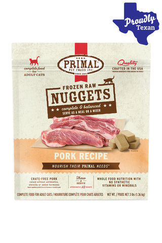 Primal Feline Pork Nuggets Frozen Raw Cat Food Highlights: