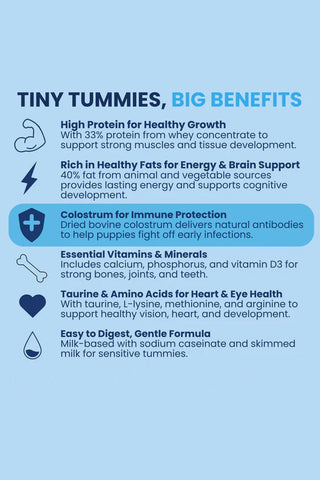 Under the Weather Bovine Milk Replacer + Colostrum for Puppies Highlights:
