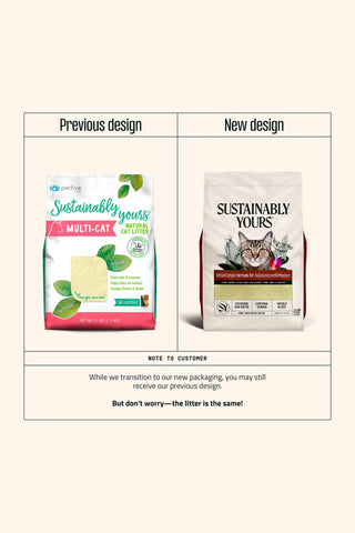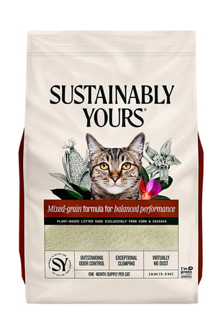 Sustainably Yours Multi-Cat Litter is an eco-friendly, sustainable cat litter made from Corn and Cassava. The starches in these two ingredients work together to clump quickly, eliminate moisture, and minimize bacteria. This white litter also helps to keep your kitty healthy by making it easy to spot differences in your cat's urine.