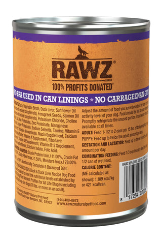 Rawz 96% Duck and Duck Liver Pate Wet Dog Food