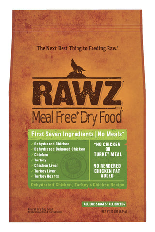 Rawz Turkey and Chicken dry formula is a woof-tastic choice for your canine companions! Made with reduced-carbohydrate ingredients with naturally occurring fat and healthy levels of highly-digestible protein, this mixed-meat dinner will have your dog's tail wagging with excitement!