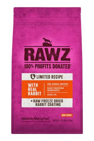 Rawz Real Rabbit dry formula is a purr-fect choice for your feline friends with sensitive stomachs. As a limited ingredient diet, Rawz Real Rabbit is really only rabbit! Each freeze-dried coated kibble is made of easily digestible protein with low fat content. Delicious and satiating, your kitty will pounce with excitement at every meal!