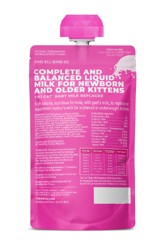 Tiki Cat Baby Milk Replacer with Goat's Milk Pouch Highlights: