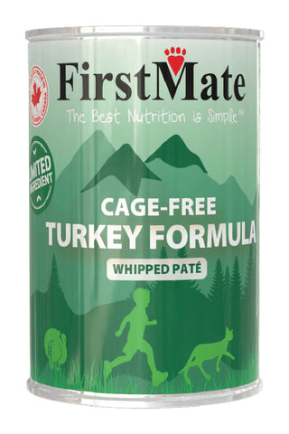 FirstMate's Cage Free Turkey Pate Wet Cat Food is a single-protein wet food, making a handy option for sensitive tummies. Free of carrageenan and guar gum, this grain-free diet is also formulated for all life stages.