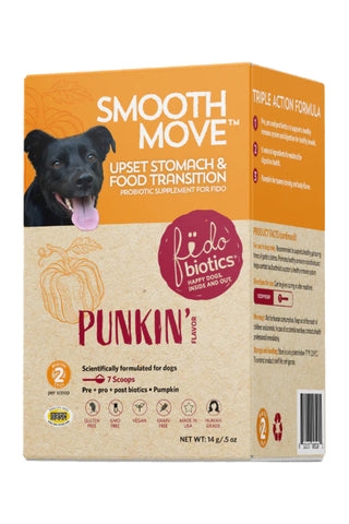 The Fidobiotics Smooth Move Digestive Dog Supplement will help support a healthy gut! Crafted with probiotics and pumpkin, this supplement will help pups transition to a new food, and treat tummy troubles in general. Each scoop contains 2 billion CFUs of probiotics formulated for dogs. Easy to mix in with your dog's meal!