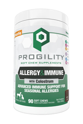 • Say goodbye to sniffles and itches! Nootie’s Progility Allergy and Immune Soft Chews are tasty daily supplements made to help your pup stay comfy, clear, and carefree all year long. Packed with immune-boosting ingredients like colostrum (nicknamed “liquid gold” for a reason!), these chews support a healthy immune system and help fight off pesky allergies. Plus, the yummy cheese flavor makes them feel more like a treat that your pup will be begging for!