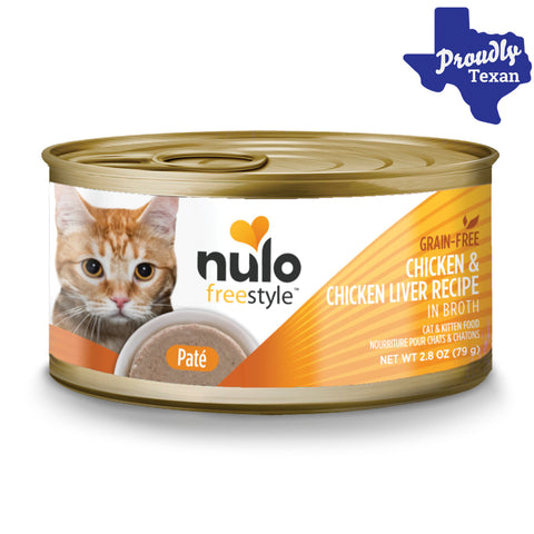 Give your cat the taste of yummy chicken with Nulo's Freestyle Chicken and Chicken Liver Pate wet food! Made with real chicken and chicken liver in a rich chicken broth, this grain-free pate recipe is packed with protein to support strong, healthy cats and thriving kittens alike.