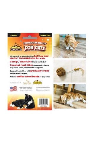Treat your cat to a toy that keeps them entertained while cleaning their teeth! This toy combines catnip and silvervine with coconut husk fiber for the purr-fect ball and toothbrush combo.